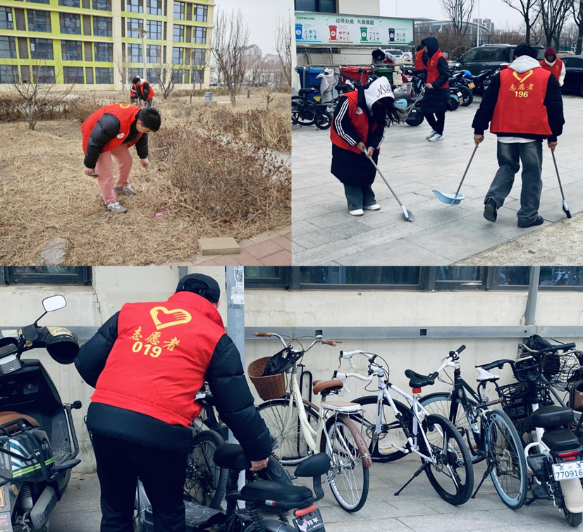 院学生会同学们身着统一的志愿者服装,手持工具🧝🏼♀️,积极参与到志愿清扫活动中🏇🏻。他们帮助清理宿舍楼下以及草地中的垃圾👨🦯➡️👩🏿🔧,把寝室楼门前清扫干净,将大家的车辆摆放整齐,宣传栏擦得一尘不染。此时正值同学们返回寝室时间,看到他们都在积极地清理和擦拭🪑,纷纷给出好评✊🏿。有同学说到:“他们不怕脏、不怕累,用自己的实际行动践行了雷锋精神,给我们树立了榜样。”