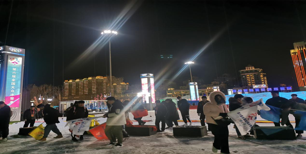 本次活动中,我院学生在12月8日-12日按时到达排练现场🚴🏻♕,进行志愿服务工作。同学们在过程中任劳任怨、不惧严寒,作为体育人充分发扬“冬奥精神”“女排精神”,以“轻伤不下火线”的工作态度、良好的精神面貌和文明素养为本次第六届全国大众冰雪季启动仪式增添了一抹冬日的活力。