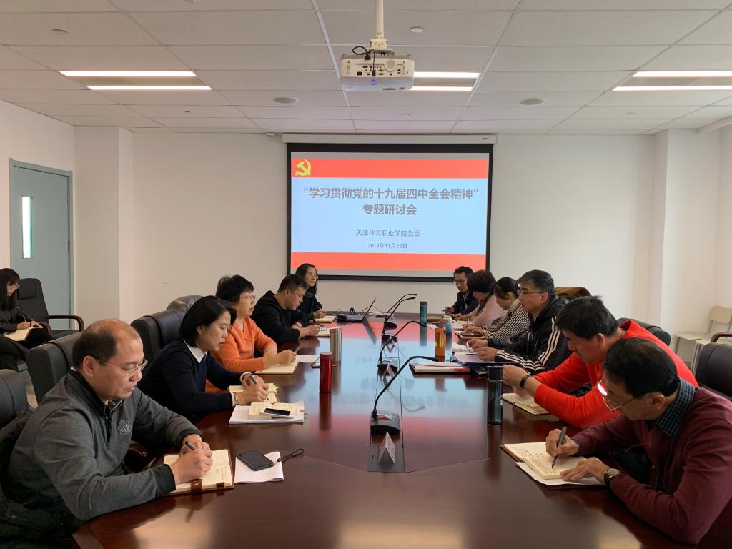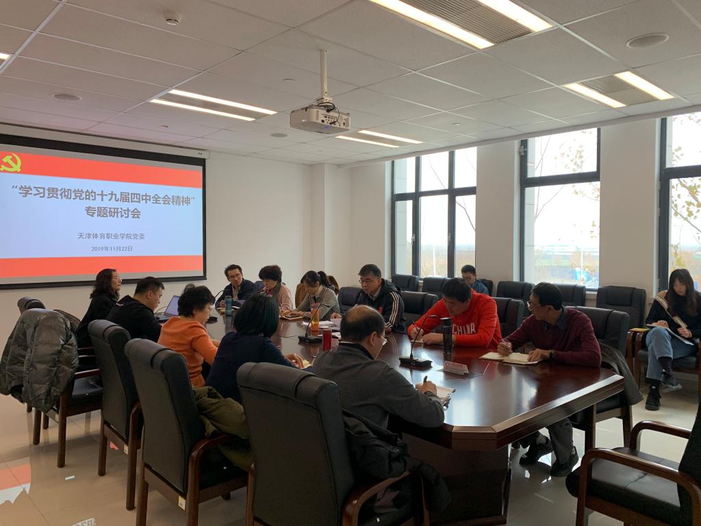 为深入学习贯彻落实党的十九届四中全会精神和习近平新时代中国特色社会主义思想🕓,11月22日下午♘,院党委在二楼会议室组织召开“学习贯彻党的十九届四中全会精神”专题研讨会🤜🏿🦹♀️,各处室系部负责人、党支部书记、思政课教师参加会议,会议由院党委书记王伟主持🥼。
