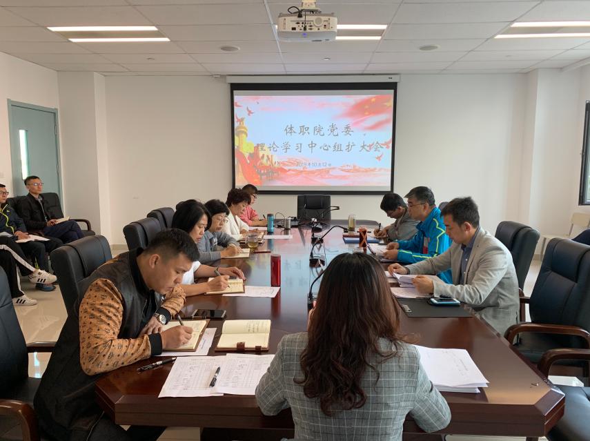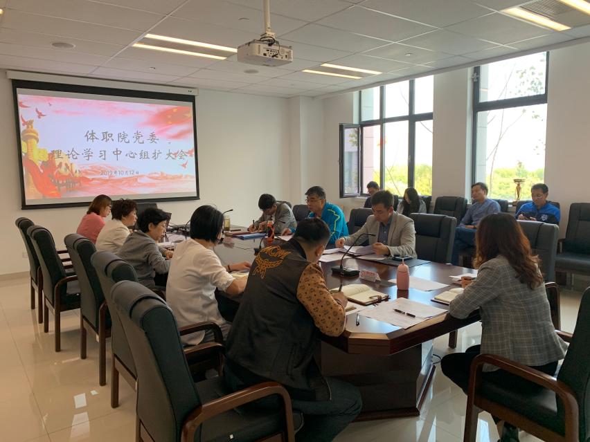 10月12日上午,学院召开党委理论学习中心组扩大会,学院领导班子成员、各处室😩、系部负责人及支部书记参会。