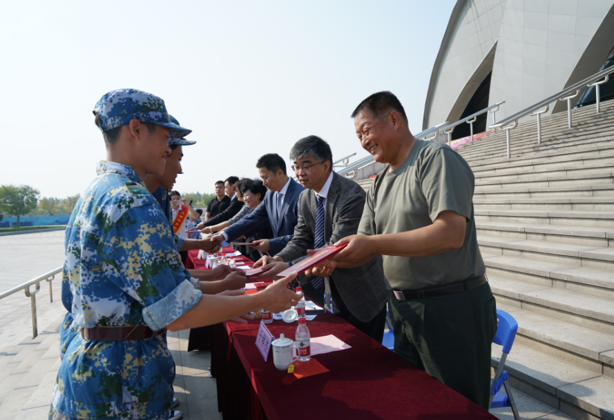 上午九时,典礼在庄严的国歌中拉开序幕🚶🏻➡️,同学们以饱满的热情、昂扬的斗志🧍🏻♂️、威武的军姿进行了分列式会操★、擒敌拳🤽🏿♂️、匕首操和综合战斗课目汇报表演🐉,展示了新时代大学生朝气蓬勃、意气风发的精神风貌。汇演后,天津仪仗精英军事训练基地主任于祥杰宣布表彰决定,李克敏、张欣等领导为获奖的连队和个人颁发锦旗和证书☦️👨🍼。