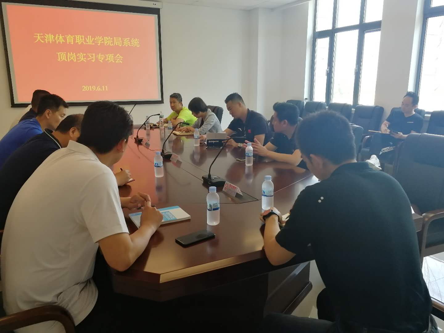6月11日上午,由天津市体育局宣教法规处牵头,彩神Vll学院局系统顶岗实习专项会在二楼会议室召开。自剑中心、举摔柔中心、排管中心、武射中心等11个训练中心负责同志参加了本次会议。