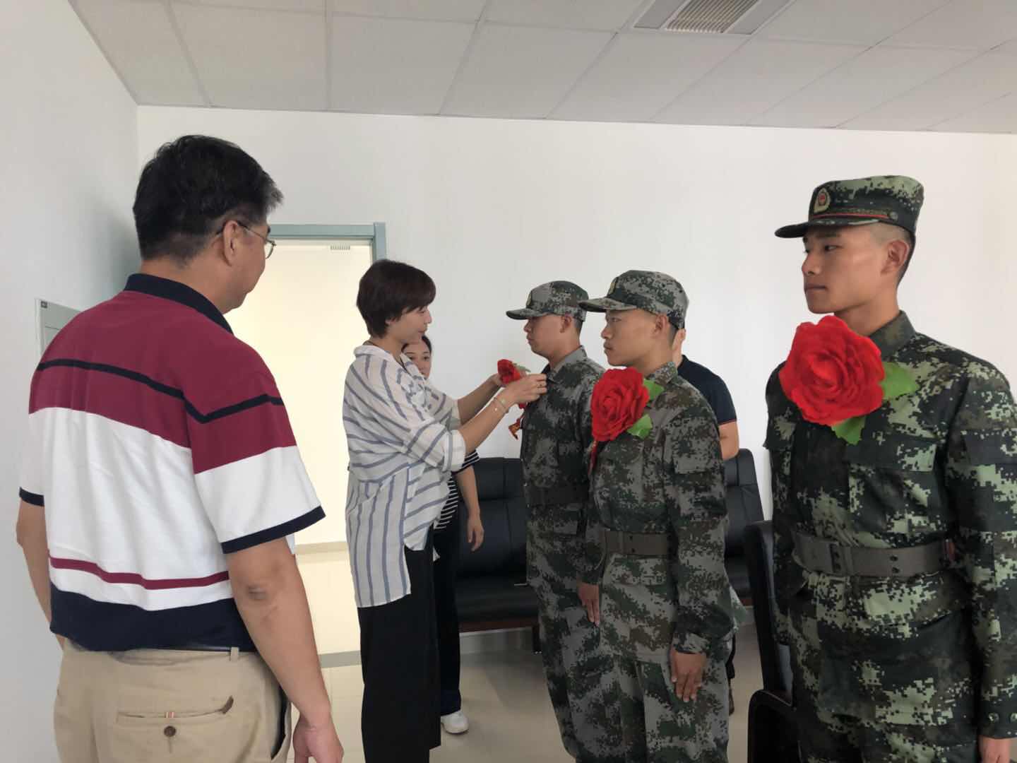 王伟🎏、魏秋月为入伍学生佩戴大红花🤾🏿。