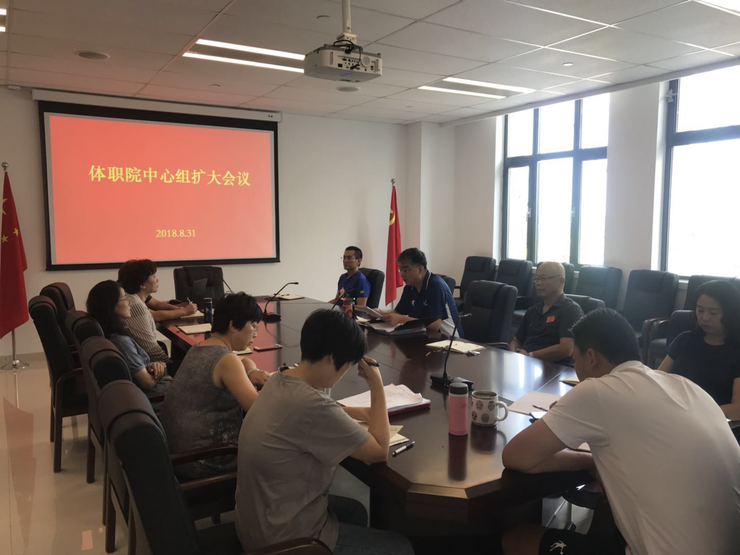 2018年8月31日♓️,体职院在二楼会议室召开中心组扩大会议🙇🏻♂️,学院党委书记王伟出席并主持,学院各处室、系部负责人,各党支部书记参加。