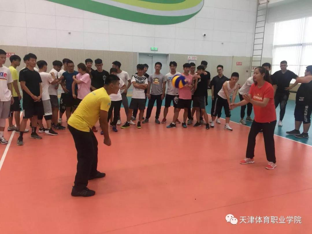 为贯彻落实天津市体育局党委《进一步学习天津女排精神活动的通知》要求,以及市教育两委的指示精神,加强学生们的思想政治教育和职业道德教育工作,结合天津体职院运动训练系特点,于6月19日下午开展“课程思政”主题活动,利用学院排球公选课的契机☝🏿,特邀请前天津女排队员👟,现天津女排二队教练员王茜走进排球课堂🅰️,为学院学生示范、讲解👩🏭、辅导、传授排球技战术♓️,同时讲述天津女排的拼搏精神⬆️。