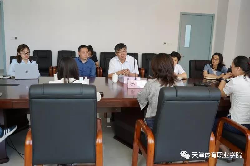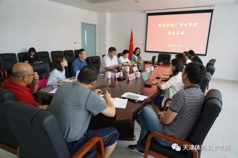 5月30日上午,广州体育职业学院来体职院交流✌🏽🤵🏽‍♂️,两所体职院相关部门在二楼会议室召开交流会🦸🏿‍♀️,参加人员有广州体职院学生处处长(原教务处处长)张苹🪂、市场营销专业带头人程丹,天津体职院党委书记王伟🥃、副院长张毅、各系部负责人。