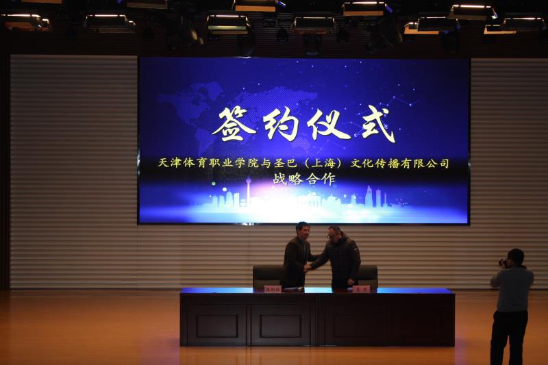 2018117日下午💁🏽‍♀️,在彩神Vll学院二楼报告厅举行体职院与天津体育产业协会🔡、圣巴(上海)文化传播有限公司战略合作签约仪式及彩神Vll学院首批实训实习基地授牌仪式👌🏻。