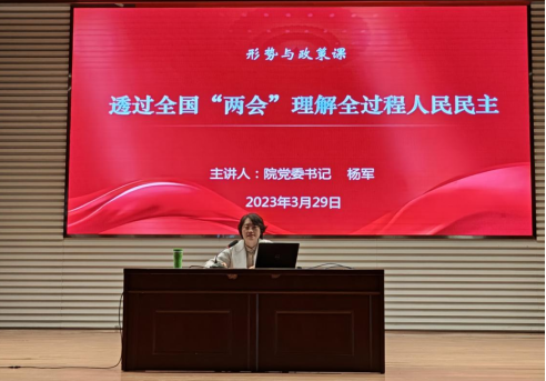 为全面贯彻落实党的教育方针💇🏻♂️,坚持书记、校长带头讲思政课落实立德树人根本任务的工作机制🪠,3月29日下午,我院党委书记杨军以《透过全国两会理解全过程人民民主》为题🫲🏼🤦🏻♀️,面向学校师生开讲形势与政策课。