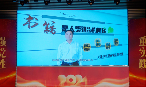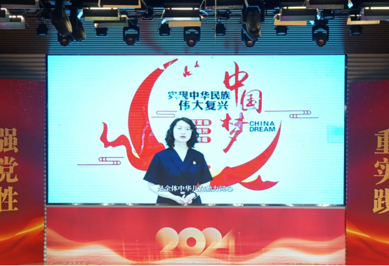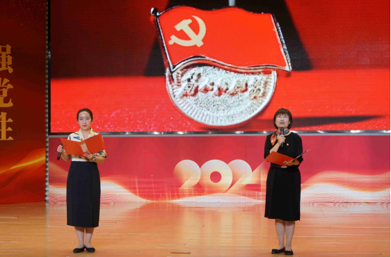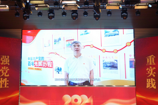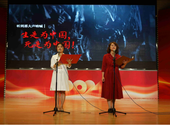 学院党委书记杨军🔅、学生处教师王慧朗诵《中国共产党百年述职报告》
