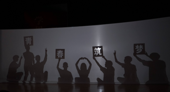 教师李文学🚶♀️、韩晓宁、唐家阁与学生合唱《青春》