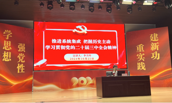 李月玲教授结合自身成长经历和感悟,以党的二十届三中全会《决定》的整体框架切入,围绕全会召开的时代背景与重大意义、全会精神的核心要义与重点把握以及学习贯彻全会精神的要求与举措三方面,用生动的语言和鲜活的案例,以“方位”“方向”“方法”三个维度深入浅出地从“为什么改”“往哪里改”“怎么改”对全会精神进行系统宣讲和深入阐释🫑。