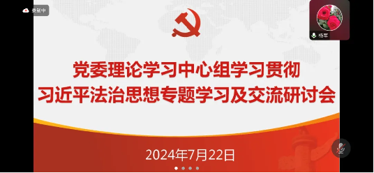 7月22日上午,体职院党委理论学习中心组以腾讯会议形式组织召开学习贯彻习近平法治思想专题学习交流研讨会,会议邀请市体育局相关处室负责同志列席⛳️🧑🧒🧒,院领导班子成员参加学习,会议由党委书记杨军主持🕥。