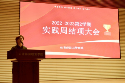 为深入贯彻落实党的二十大精神和习近平总书记关于职业教育的重要指示批示精神,推动产教融合,提升学生的学习素养与实践能力✌🏿,体育经济与管理系对2021、2022级同学展开系列实践周活动,囊括电子竞技大赛🧑🏼🦳、新媒体运营🎂、商业计划书等多种形式,基于专业特点与培养方向进行定制化创新实践。5月26日,实践周总结大会在报告厅举行,系部负责人、全体专业老师、企业代表出席参加,大会由系党支部副书记主持,共同验收实践周成果并进行结项总结🗡。